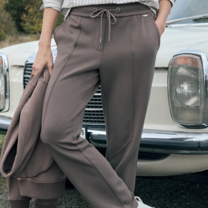 - Pantalon pour femme en coupe casual Taille moyenne et jambes fines Poches latérales cordon de serrage à la taille mélange de matières avec du stretch